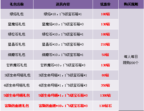 1. 限时热卖区域中的道具仅限“钻石”购买;