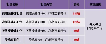 1. 礼包仅在商城“限时热卖”处出售,道具仅限“钻石”购买;