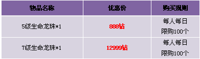 【活动内容】活动期间,商城上架5级龙珠,让你立刻获取神龙的力量!