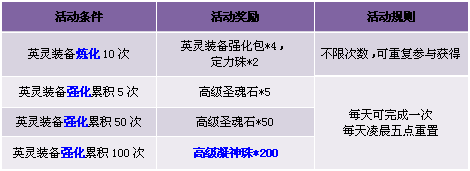 【活动内容】活动期间,炼化、强化英灵装备达到指定次数,即可获得相应奖励。铸就属于你的极品英灵装备,打造新一代英灵王中王。