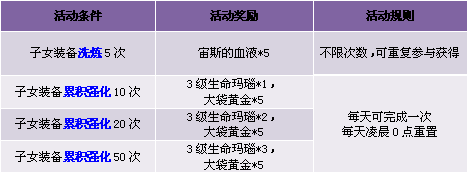 2. 子女装备累积强化,每档每日可完成一次,活动每天凌晨0点重置;