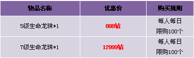 【活动内容】活动期间,商城上架5级龙珠,让你立刻获取神龙的力量!