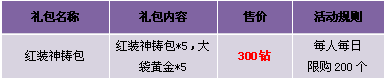 活动五、神铸红装大礼包