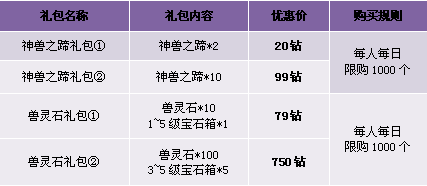 【活动内容】活动期间,商城上架神兽之蹄礼包。超值特价神兽之蹄,坐骑升星零距离。