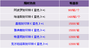 2. 限时热卖区域中的道具仅限“钻石”购买, 购买物品均为绑定。