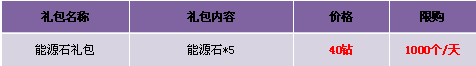 【活动内容】活动期间,商城限时出售“能源石礼包”,做任务达人更可以拿更多!