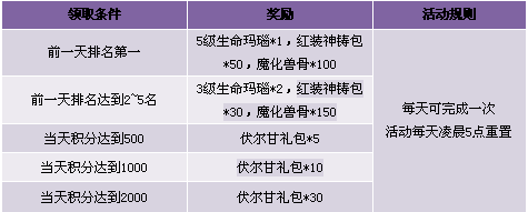 3. 14日可领取13日的排名及积分奖励, 15日可领取14日的排名及积分奖励;