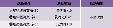 【活动内容】活动期间,商城上架诸多符文石道具,史无前例最具性价比,吞噬符文石,可获得相应奖励。