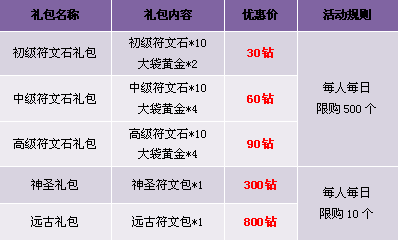 1. 神圣符文包:打卡可获得驱散符文石、净化符文石和守护符文石中的一个;