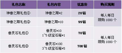 【活动内容】活动期间,商城上架神兽之蹄礼包。超值特价神兽之蹄,坐骑升星零距离。