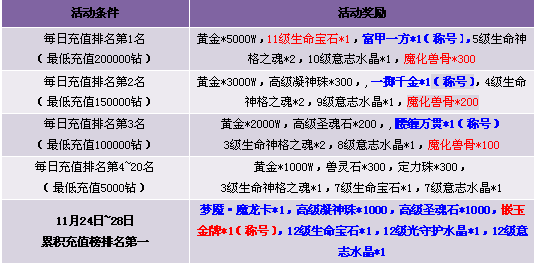 3. 以上活动充值金额相同情况下,先达到充值要求的排名靠前;