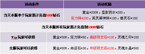 【活动内容】活动期间,累积充值指定金额,即可获得超值大礼。