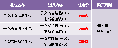 【活动内容】活动期间,商城上架子女战徽提升系列礼包。