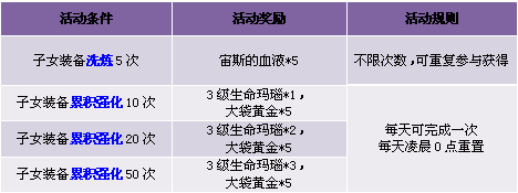 1. 子女装备洗炼5次活动不限次数;