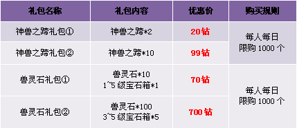 【活动内容】活动期间,商城上架神兽之蹄礼包。超值特价神兽之蹄,坐骑升星零距离。
