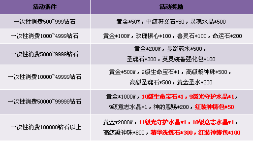 3. 有效消费定义:玩家所有消费钻石(不含拍卖行/绑定钻石)的行为都算作有效消费;