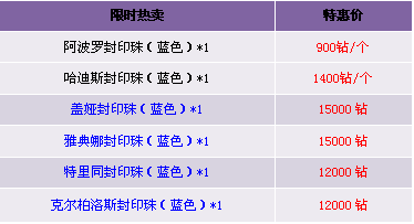 2. 限时热卖区域中的道具仅限“钻石”购买,购买物品、奖励物品均为绑定。