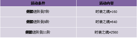 【活动内容】活动期间,玩家时装升阶到7阶及以上,可获得奖励时装之魄。升阶翅膀提升战力,成就一代战将之王!