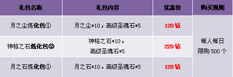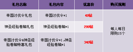 1. 优惠礼包在商城“限时热卖区”出售,限时热卖区域中的道具仅限“钻石”购买;