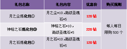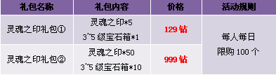 【活动内容】活动期间,商城热卖灵魂之印礼包。灵魂之印、宝石箱,限时限量打包出售。