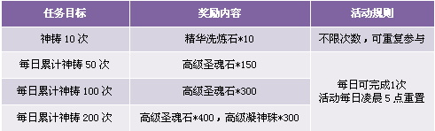 【活动描述】活动期间,玩家神铸达到指定要求即可获得丰厚奖励。
