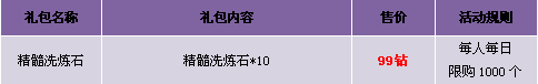 【活动内容】活动期间,精髓洗炼石商城限时出售,红装洗炼不用愁!