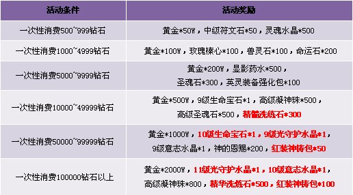 3. 有效消费定义:玩家所有消费钻石(不含拍卖行/绑定钻石)的行为都算作有效消费;