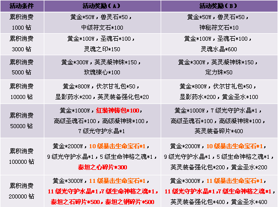 3. 活动期间累计消费满足条件可领取奖励,每重奖励玩家只能领取一次, 请留意领取活动奖励。