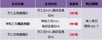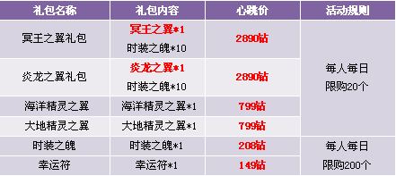 1. 礼包仅在商城“限时热卖”处出售,道具仅限“钻石”购买;