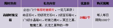 2. 限时热卖区域中的道具仅限“钻石”购买, 购买物品均为绑定。