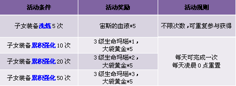 2. 子女装备累积强化,每档每日可完成一次,活动每天凌晨0点重置;