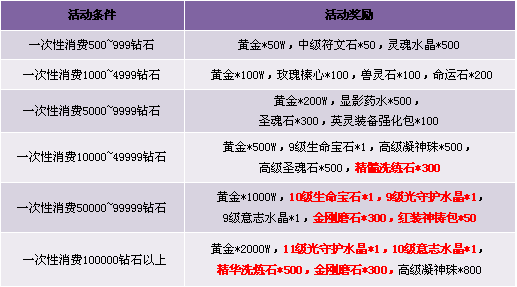 3. 有效消费定义:玩家所有消费钻石(不含拍卖行/绑定钻石)的行为都算作有效消费;
