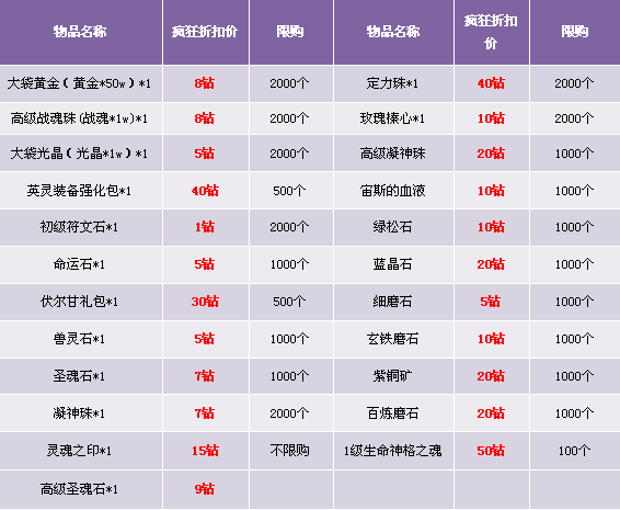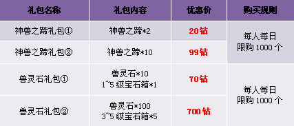 1. 优惠礼包在商城“限时热卖区”出售,限时热卖区域中的道具仅限“钻石”购买;