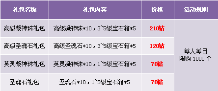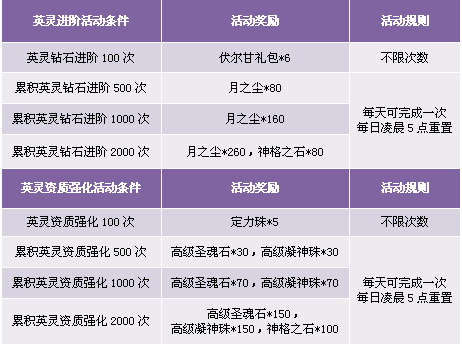 3. 英灵进阶活动仅限使用钻石培养,绑定钻石与圣魂石均不计算在内;