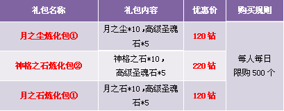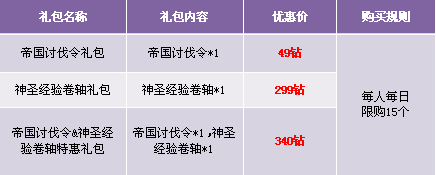 1. 礼包仅在商城“限时热卖”处出售;
