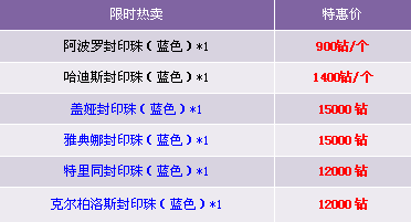 2. 限时热卖区域中的道具仅限“钻石”购买。
