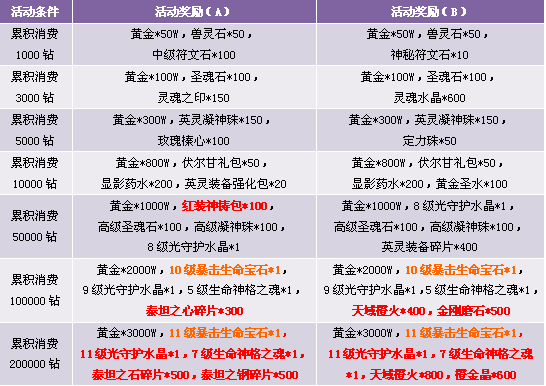 3. 活动期间累计消费满足条件可领取奖励,每重奖励玩家只能领取一次, 请留意领取活动奖励。