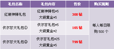1. 礼包仅在商城“限时热卖”处出售,道具仅限“钻石”购买。