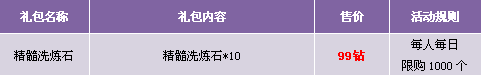 【活动内容】活动期间,精髓洗炼石商城限时出售,红装洗炼不用愁!