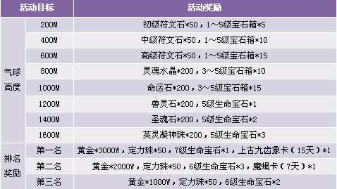 2. 活动结束后,上升高度排名前三的玩家可以获得额外奖励,奖励通过系统邮件发送;