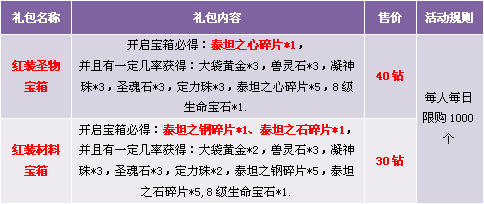 【活动内容】活动期间,红装圣物宝箱和红装材料宝箱齐齐上架游戏商城,机会不容错过。