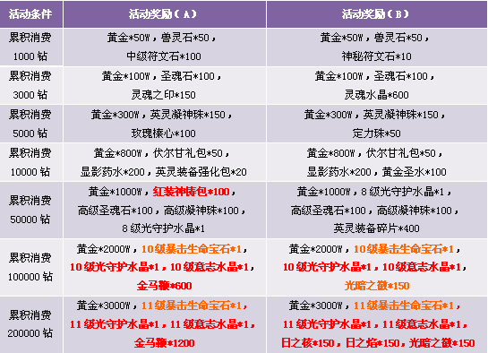 3. 活动期间累计消费满足条件可领取奖励,每重奖励玩家只能领取一次, 请留意领取活动奖励。