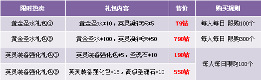 【活动内容】活动期间,英灵神装铸造大礼包限时热卖,不容错过。
