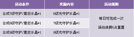 【活动内容】活动期间,合成指定等级水晶,即可获得相应奖励。