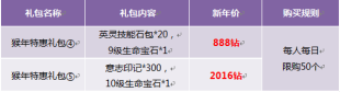 高级圣魂石礼包 | 高级圣魂石*10,3~5级宝石箱*5 | 88钻 | |