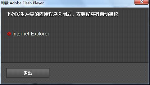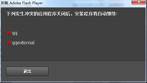 3)待卸载器下载完成后,关闭所有的浏览器以及所有正在使用flashplayer的软件(一般比较常见的软件是QQ)。然后运行卸载器(如图以32位操作系统为例