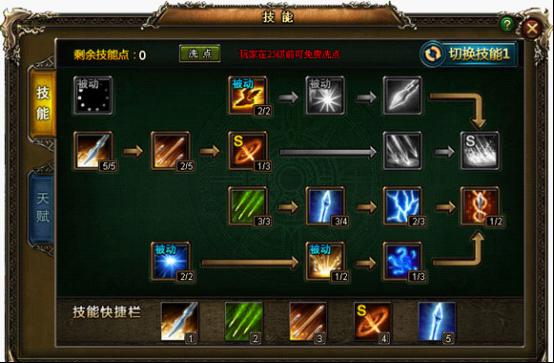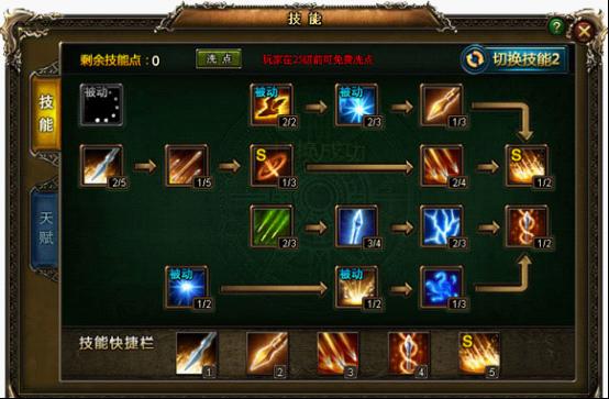 4、第二套技能玩家可以从新加点,重新设置技能快捷键;