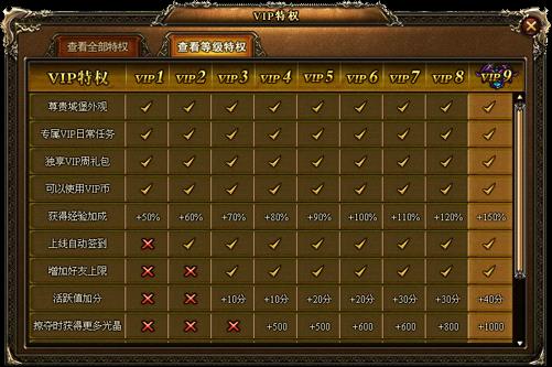 VIP达到一定等级后,掠夺城堡成功后,会在原有基础上获得额外的光晶,有等级差异;