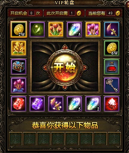 使用“Vip币”可开启Vip轮盘,点击“开始”转动轮盘,可获得惊喜奖励!