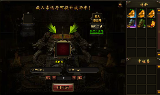 而合成道具的成功会有一定的成功率。如果想让自己的成功率提高,那么幸运符则是你的好帮手,幸运符会按百分比增加合成成功几率。